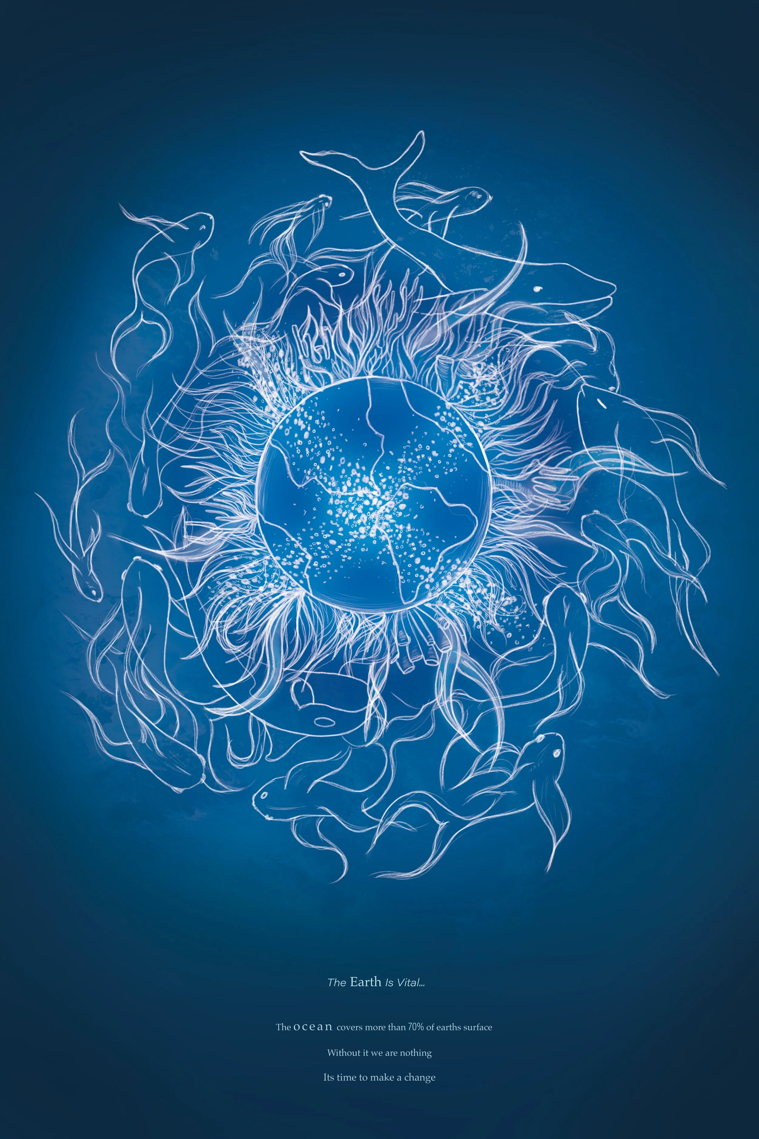 This poster was designed to spread awareness of the ocean and saving its beauty. When designing this, I was inspired by the recent oil spills on the coasts of California. California is where I was raised, and I grew up going to the beach a lot, and I have a very deep spiritual connection with it. I thought designing a poster with something I am so connected to was only fitting. When creating this poster, I wanted to focus on the beauty and spirit of the animals rather than their actual forms. This is meant to show how if we don’t make a change, then the life of the sea will start to fade away.